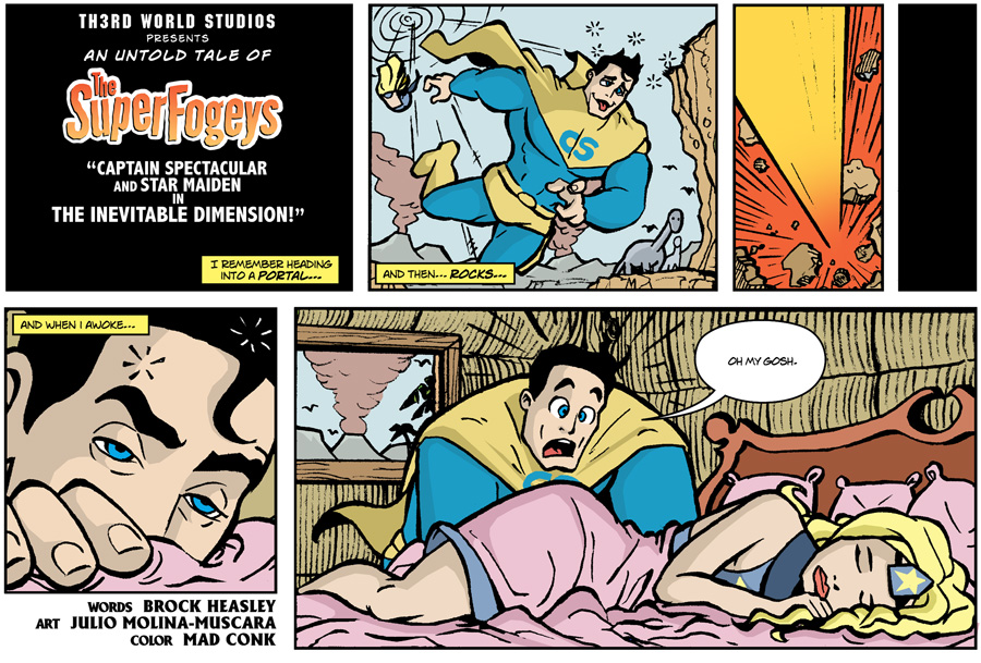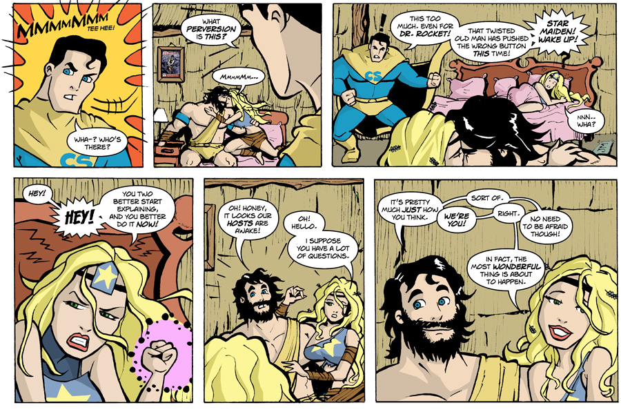 Third ex-wife to Captain Spectacular, Star Maiden is Valhalla’s most tragic resident. Once the most noble and powerful superheroine in the galaxy, Star now has trouble remembering which year it is and if she had corn flakes or socks for breakfast. Her only companion is a stuffed, talking bear named “Clovis,” given to her by the recently departed Dr. Rocket, though Swifty is also known to tug at her cape now and again.